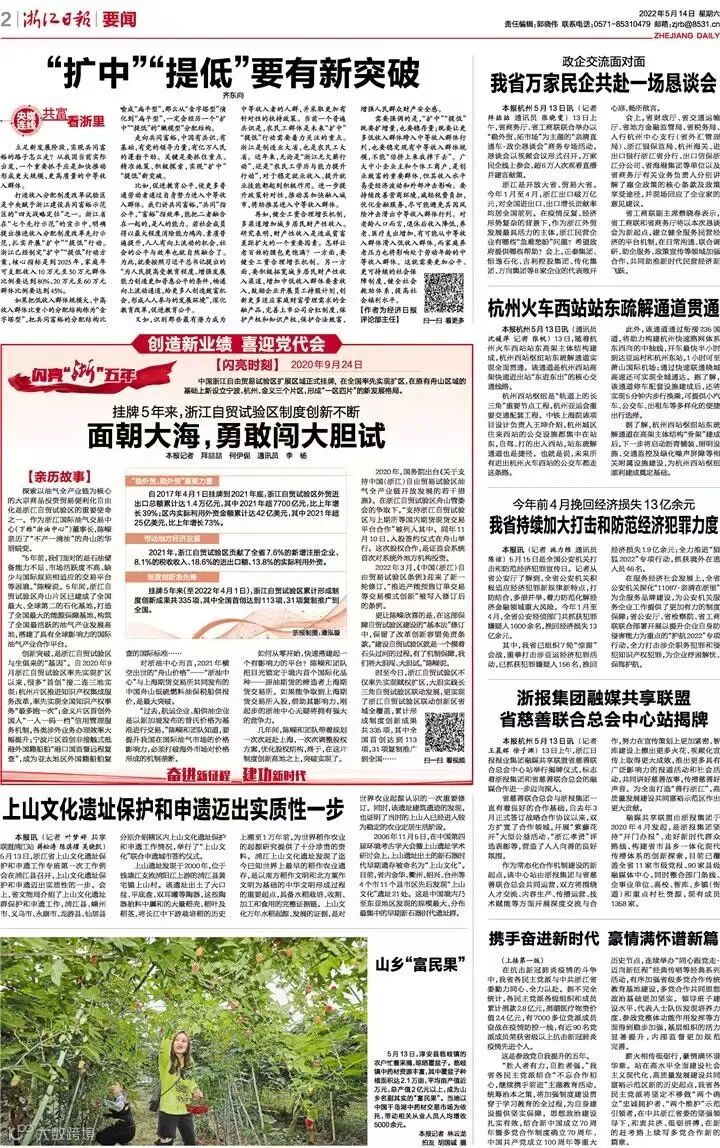 5月14日,浙江日报版面刊发了中国浙江自贸试验区挂牌5年来,对标国际追赶先进,取得的不小成绩。浙油中心以亲历者的角度回顾了自身在建设中的奋斗成效。