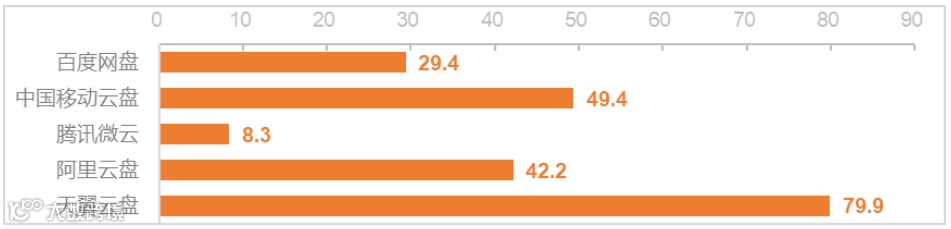 (2)5款App后台静默12小时,上传数据流量平均⁽⁴⁾最多的为天翼云盘,约为80KB;平均最少的为腾讯微云,约为8KB。具体情况如图2。