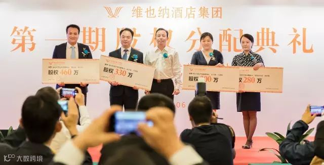 6月6日,维也纳酒店集团第一期股权分配典礼,在深圳隆重举行。本次,该集团共分配了2.18亿股权中的35%,惠及122位员工,涵盖维也纳酒店公司、维也纳新创品牌、餐饮公司、新创业公司四大版块。“1+N”的模式下,激励对象除享有维也纳酒店这“1”部分的股权激励外,还享有N家创业公司股权激励部分的10%。值得注意的是,股权激励还会持续,暂未分配的部分,包括2.18亿股权中的65%和创业公司股权激励部分的90%,均预留给为公司创造价值的奋斗者和新加入的精英。