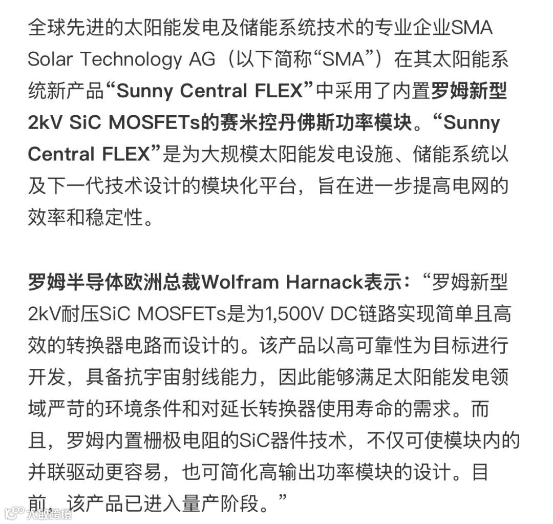 ROHM丨内置罗姆新型2kV SiC MOSFETs的赛米控丹佛斯模块被SMA的太阳能系统采用