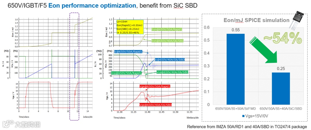 图6 AIKBE50N65RF5 开通能量仿真,Eon降低一半