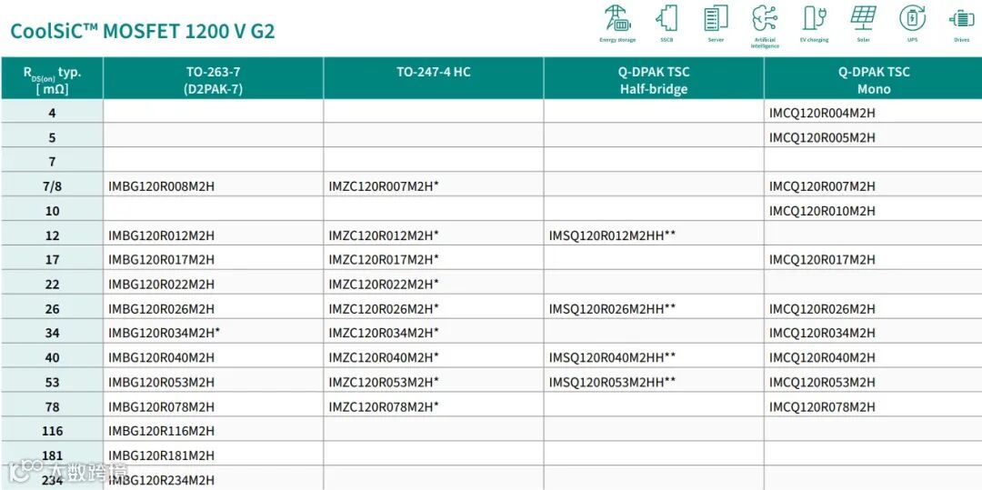 同类最佳的RDS(on),市场上最精细的产品组合。D2PAK封装有12个型号实现了最佳产品选择,1200V G1最大规格为30mΩ,而G2最大规格8mΩ。TO247通孔封装G2最大规格可达7mΩ。