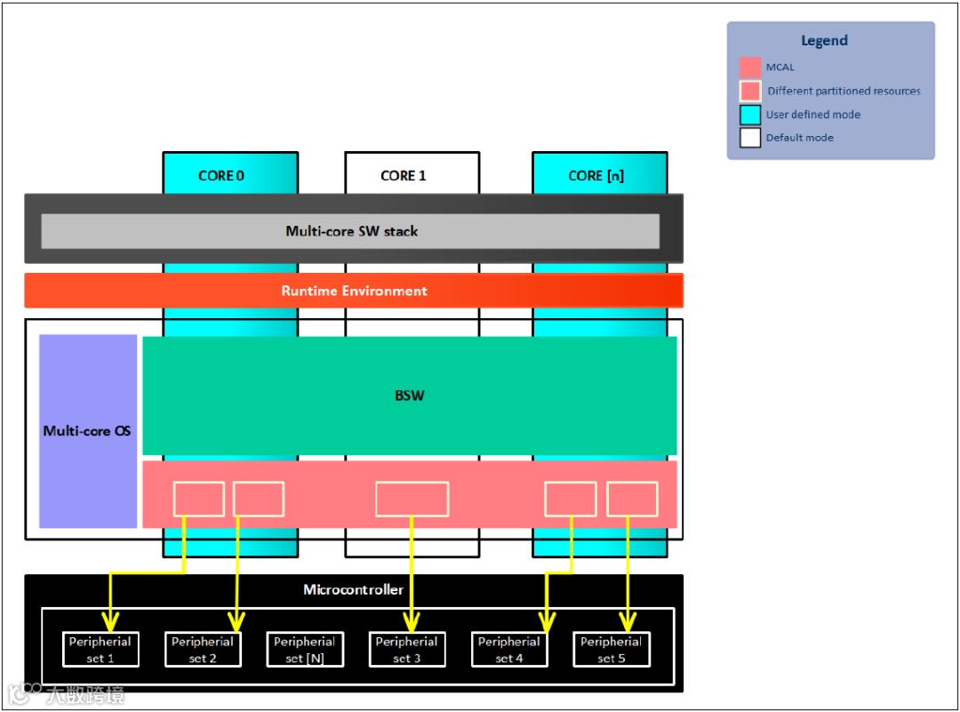 在MCAL软件需要从single core上的不同分区进行操作的情况下,例如不同分区位于不同ASIL的情况,“integration software”应为试图执行MCAL的每个分区提供唯一标识符。MCAL允许“integration software”通过“configuration module and stub implementation for static source code”提供该标识符。如果没有integration software的这种实现,MCAL软件就无法在同一核的多个分区上运行。