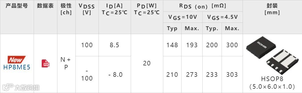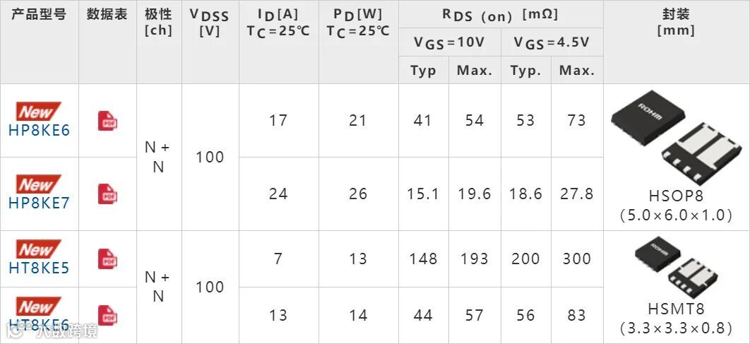 全球知名半导体制造商ROHM(总部位于日本京都市)面向通信基站和工业设备等的风扇电机驱动应用,开发出将两枚100V耐压MOSFET*1一体化封装的双MOSFET新产品。新产品分为“HP8KEx/HT8KEx(Nch+Nch)系列”和“HP8MEx(Nch+Pch*2)系列”两个系列,共5款新机型。