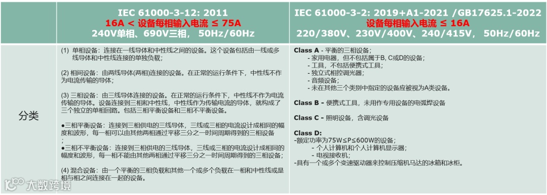 这里需要敲黑板的是,是以输入相电流有效值,而不是根据单相输入还是三相输入,来决定究竟适用哪个法规。确定好适用的法规后,再根据对应的细分类别去查看具体的谐波电流限值要求。