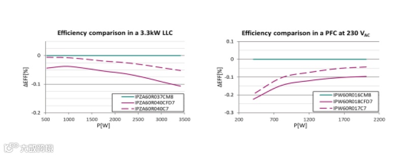 相比CoolMOS™ 7系列同类器件,CoolMOS™ 8技术的关断损耗(Eoss)降低10%,输出电容(Coss)降低50%。CoolMOS™ 8器件相比CoolMOS™ 7还将热阻降低至少14%,大大改进了热性能。能够实现这一改进,是因为使用了英飞凌专有的互连技术(.XT),该技术提高了将硅芯片连接至引线框架时的热导率。这些性能优势使得CoolMOS™ 8比CoolMOS™ 7 具有更高效率。