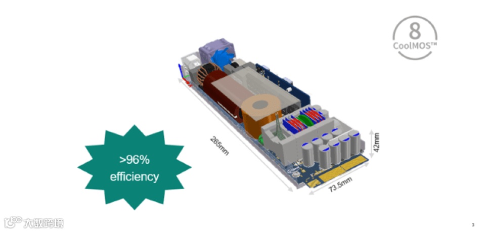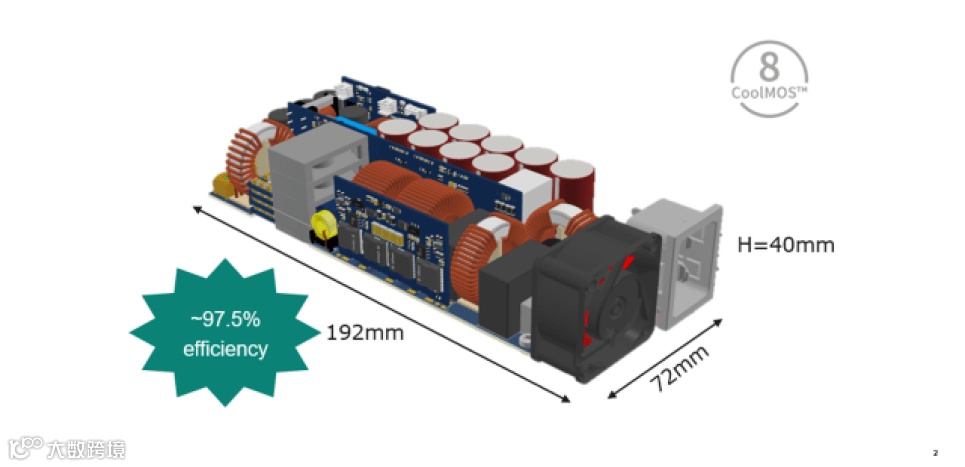 CoolMOS™ 8对系统集成的益处,可通过英飞凌利用该系列器件进行的参考设计来证明。例如,一台3.3 kW高频率和超紧凑整流器可达到97.5%的效率,以及95 W/in3的功率密度,尺寸为1U时也是如此。能达到如此高的工作效率和功率密度,是因为在设计中联合使用了CoolMOS™ 8、CoolSiC™及CoolGaN™ 技术;它采用了创新的集成式平面磁性结构,并对图腾柱功率因数校正(PFC)级和半桥GaN LLC DC/DC功率变换级进行完全数字化控制。