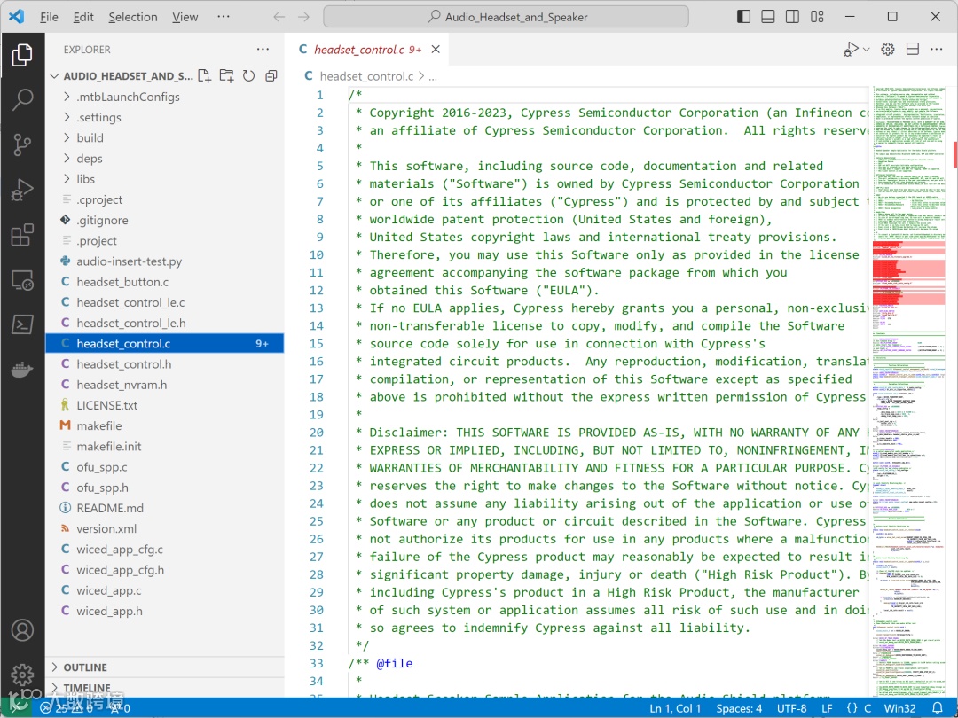 如图03,这就是Visual Studio Code直接编辑ModusToolbox™的Eclipse IDE工程的演示。可以看到,目录结构都是Eclipse IDE工程的结构,但我们却是在Visual Studio Code中编辑它。