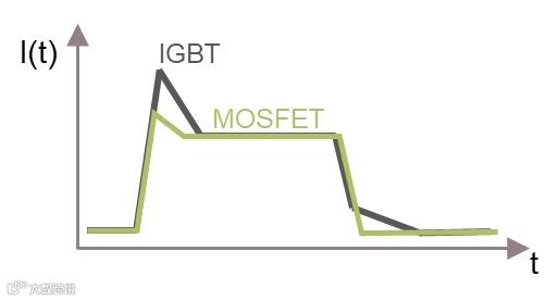 IGBT是双极性器件,导通时电子和空穴共同参与导电,但关断时由于空穴,只能通过复合逐渐消失,从而产生拖尾电流,拖尾电流是造成IGBT关断损耗的大的主要原因。SiC MOSFET是单极性器件,只有电子参与导电,关断时没有拖尾电流使得SiC MOSFET关断损耗大大低于IGBT。