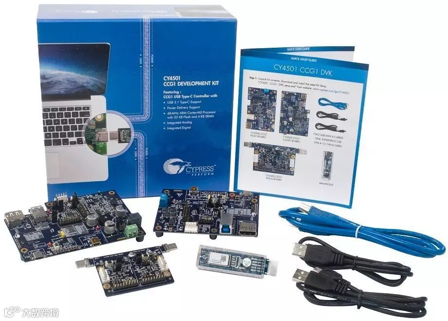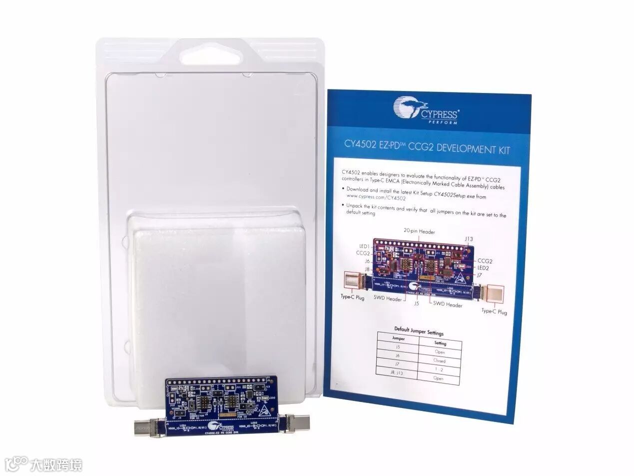 赛普拉斯CY4501 CCG1开发套件(DVK)基于CCG1产品系列(CYPD11xx)。该DVK用于开发含有Type-C连接器的USB host和client系统,也适用于EMCA线缆的开发。售价:499美元。