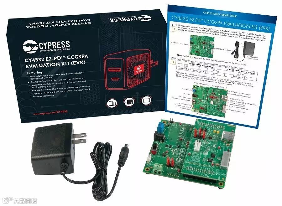 赛普拉斯 EZ-PD CY4532 CCG3PA评估套件基于CCG3PA控制器(CYPD37xx),用于电源适配器、移动电源和车载充电器。售价:149 美元。