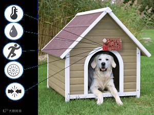 主人可以联网远程监控自己的狗屋。不仅能远程控制温度和灯的开关,还能让主人知道他们的宠物是否在窝里。