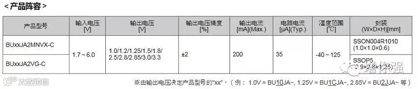 1. 1mm方形的全球最小车用LDO稳压器