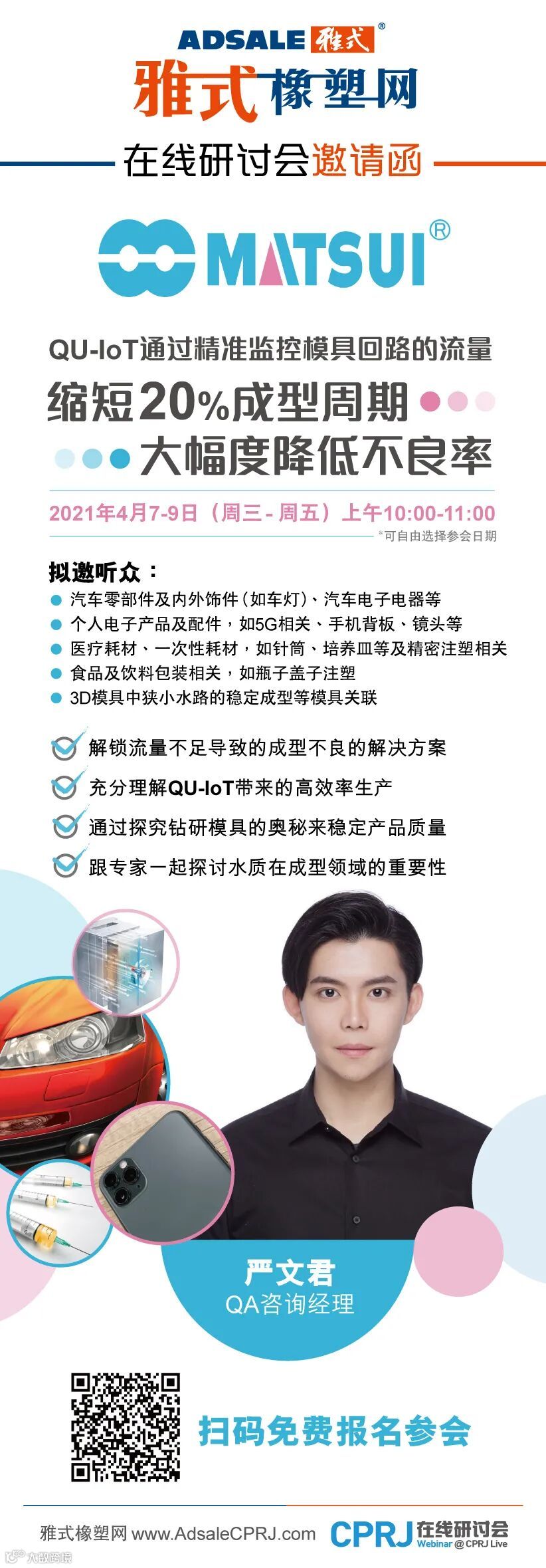 导读:时间:2021年4月7-9日 10:00~11:00主题:QU-IoT通过精准监控模具回路的流量,缩短20%成型周期,大幅度降低不良率。