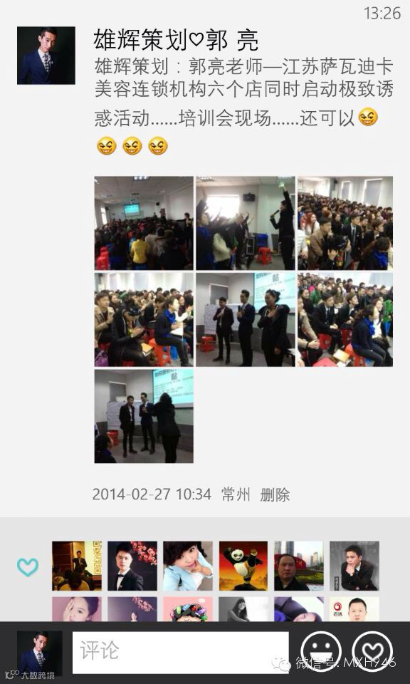 2)点击首页的朋友们》添加朋友》查找公众账号输入“MXH946 ”或搜索‘马雄辉’来进行关注