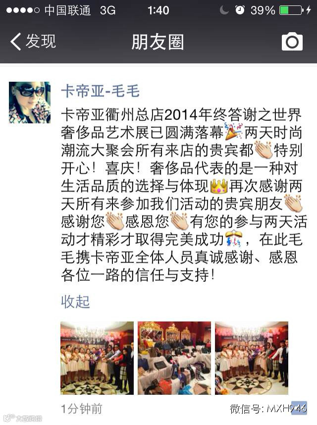 更加要感恩卡帝亚领导人毛总的支持和信任,有您和团队的付出才精彩才取得完美成功!祝福越来越强!