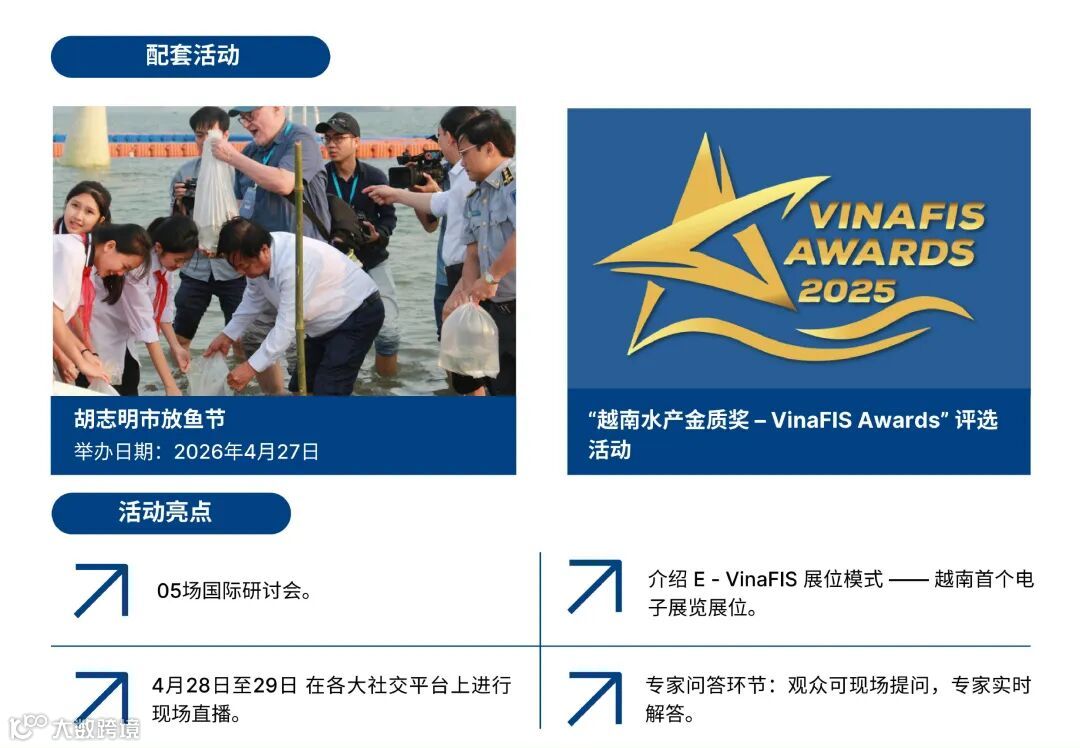 VinaFIS Expo是由越南水产协会主办、在农业与环境部的支持下举办的越南首个水产科技国际博览会。福建荟源文化发展集团有限公司作为展会的主办单位之一,同时承担中国区的参展企业组展总代理工作。该博览会是越南唯一覆盖水产全产业链的综合性展会,