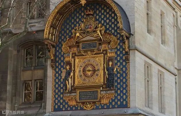 时间流动,表盘上留下了历代法国君主的印记。在代表法律和正义的两个镀金人像中间,刻着亨利二世和凯瑟琳·德·美第奇的姓名首字母缩写,刻着拉丁文的铭文,也刻下了修复日期。