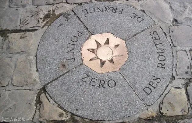 在圣母院的前院,有一块石板,上面有一枚铜币,写着“法国之路的零点”。