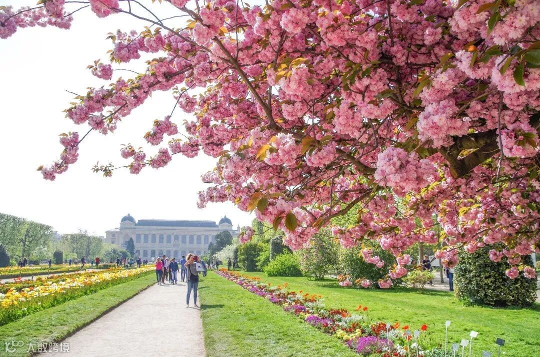 这个时节的巴黎植物园樱花开的最美。这里有一棵巨无霸樱花树:高在6-8米,树枝展开宽度可达12米。站在大大的樱花树下,等待一阵春风吹过让樱花雨将你包围吧。