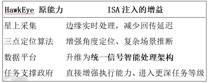 卫星能收,但没有处理链路,数据只是数据。ISA带来的是:
