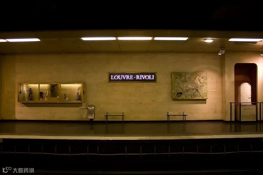 摆满了雕塑和艺术品的卢浮宫-里沃利站(Louvre-Rivoli);