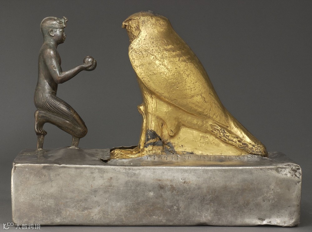 「塔哈尔卡法老向鹰隼神 Hemen 敬献红酒」雕塑,埃及,公元前690-前664年