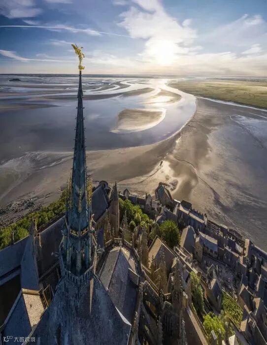 圣米歇尔山屹立在距离诺曼底海岸约1公里的岩石小岛上,它的身姿在海雾中若隐若现,如同落入凡尘的圣女,眺望着海浪的潮汐更迭,见证着历史的起落变迁。这座岛上的修道院(Abbaye du Mont-Saint-Michel),一直都是法国文化重要的标志性象征。