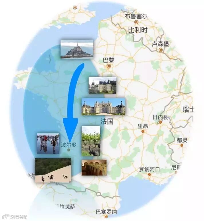 一路走过海岛上的圣米歇尔山与修道院,卢瓦河谷的皇室行宫群、孕育世界著名法国红酒的葡萄园和酒庄,为海洋和森林画出界线的匹拉沙丘,海上的帆船和岸上烹饪海鲜的渔民,以及名城波尔多,犹如从古走到了今。