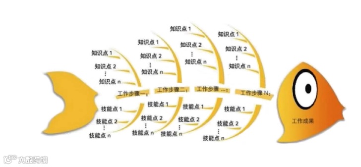 我们可以根据我们的总目标,对个人的目标进行拆解,员工会为了达到目标需要具备什么技能,了解什么知识点。在这里可以去使用思维导图中的鱼骨去拆解分析。