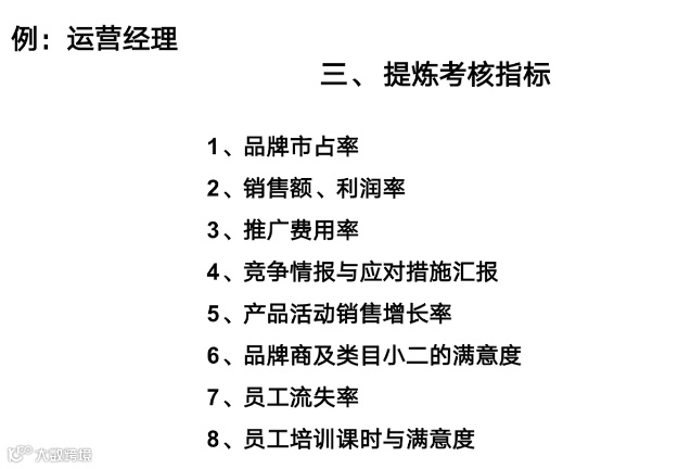 举个运营经理的例子,这里使用的是内容分析法。可以更直观清晰的看到企业应如何制定绩效考核: