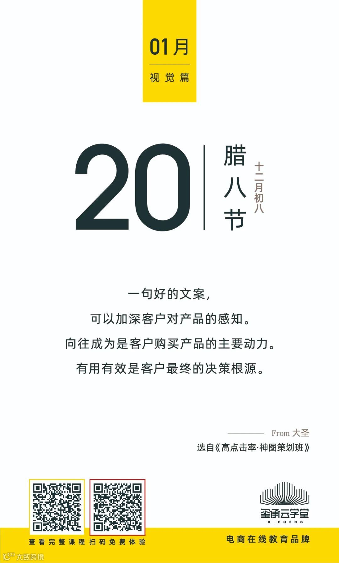 相信这句话能够引起很多电商人的共鸣。这是1月20日的《2021电商思维日历》中的金句,它来自于大圣老师的《高点击率·神图策划班》。