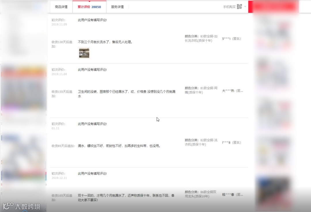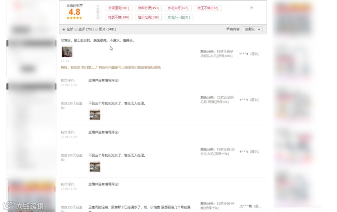 “不到3个月就长流水”,“漏水”,说明漏水也是买家关心的问题;