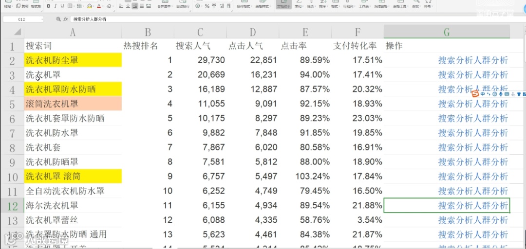 ● 再看下面这个“滚筒洗衣机罩”,现在主流的洗衣机是滚筒或者波轮的,那如果滚筒的洗衣机罩搜索人气这么高,是不是意味着买滚筒洗衣机的人,对洗衣机罩需求更大一点,那在详情页里滚筒洗衣机出现的次数是不是可以更多一些;