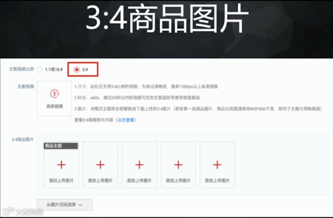 我们把主图视频比例切换成3:4,又多了5张3:4的商品图片。
