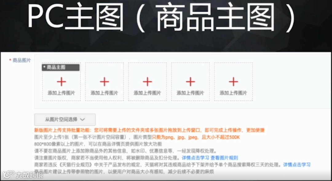 另外,PC主图5张和无线主图5张也是必须要上传的。