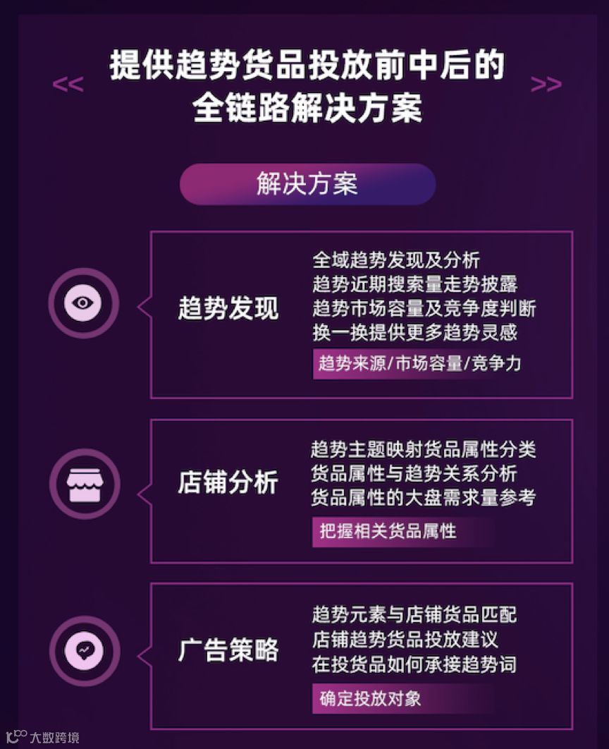对于商家来说,最关心的就是抓住消费者的兴趣动向,趋势明星正是以消费者感兴趣的流行趋势元素为切入点,挖掘出消费者新兴消费需求背后代表的流量需求,并将其打造为全网趋势主题榜,通过数据技术能力帮助商家洞察出店铺内与之对应的货品,形成完整的淘内搜索渠道中洼地流量的推广链路。