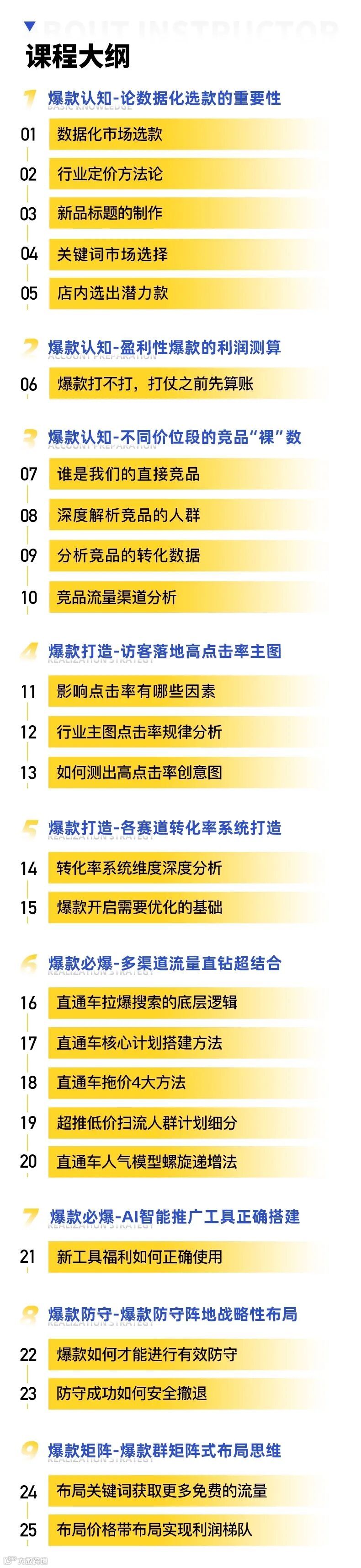 金钱豹老师的【9招爆款打造流程 快速实现店铺突围】线上课程,包含9大模块,25节课程,不管你是想打好爆款认知基础,还是想要做好爆款防守和矩阵,都是一门必学课程!