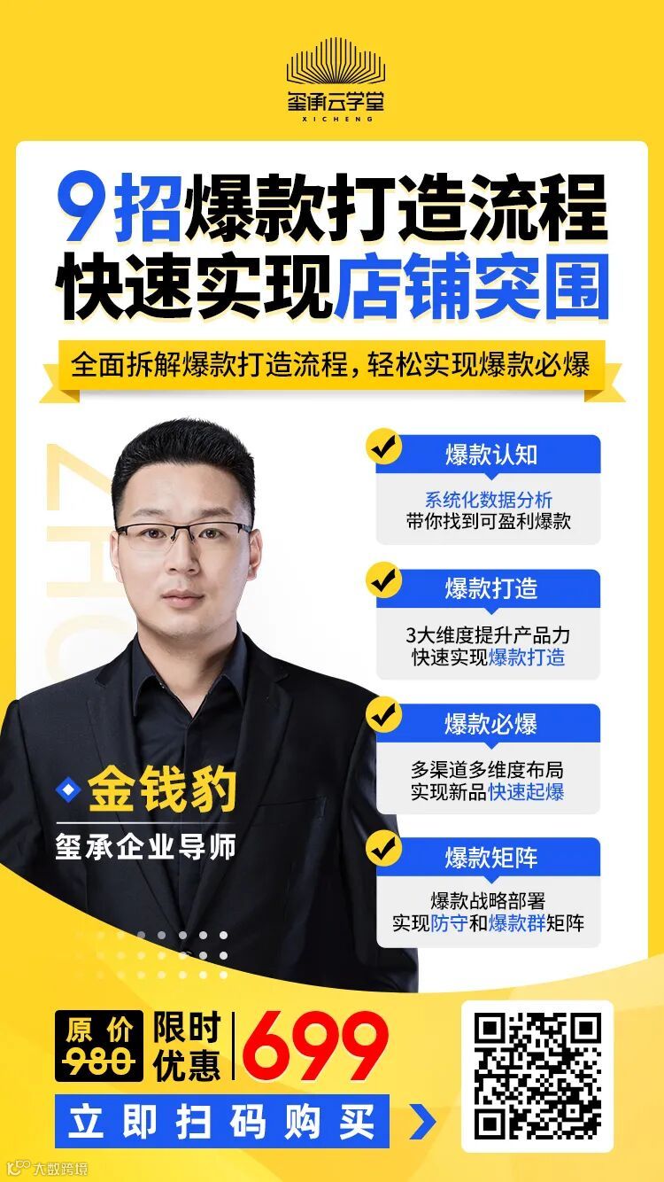为了帮助更多电商人了解爆款,理解爆款,玩转爆款,这次,玺承云学堂特邀拥有11年电商一线实战经验的“爆款小王子”——金钱豹老师,结合他多年打造多类目TOP单品爆款及爆款群的经验,首次发布爆款打造的线上课程!