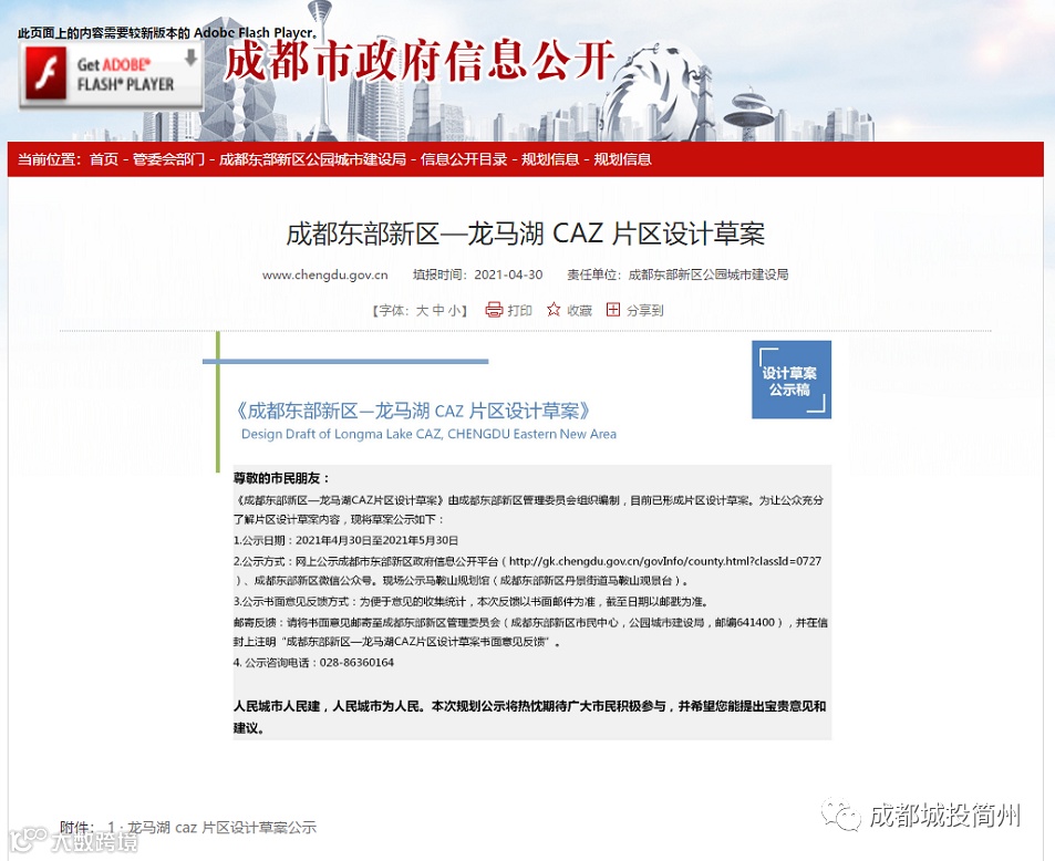 《成都东部新区—龙马湖 CAZ 片区设计草案》(以下简称《草案》)由成都东部新区管理委员会组织编制,目前已完成编制。为让公众充分了解片区设计草案内容,《草案》将于4月30日起至5月30日向社会公示。《草案》对成都东部新区—龙马湖 CAZ 片区的规划范围、发展规模、发展目标、产业功能等方面作了详细规划,市民可以到马鞍山规划馆(成都东部新区丹景街道马鞍山观景台),或是登陆成都市东部新区政府信息公开网站、成都东部新区微信公众号查看详细内容。