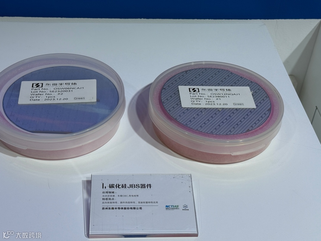 东微半导体(688261.SH)成立于2008年,是一家技术驱动型的半导体技术公司,在作为半导体核心技术的器件领域有深厚的技术积累,专注半导体器件技术创新,拥有多项半导体器件核心专利。2016年东微半导体自主研发的新能源汽车直流大功率充电桩用核心芯片成功量产,打破国外厂商垄断。本次展会上,公司展出了碳化硅JBS器件产品,具备良好的反向恢复特性以及器件热阻特性,主要应用于光伏逆变器、车载OBC等领域。目前,东微半导体已成为国内高性能功率半导体领域的佼佼者,在新能源领域替代进口半导体产品迈出了坚实一步,产品进入多个国际一线客户,并受到了客户的一致好评。