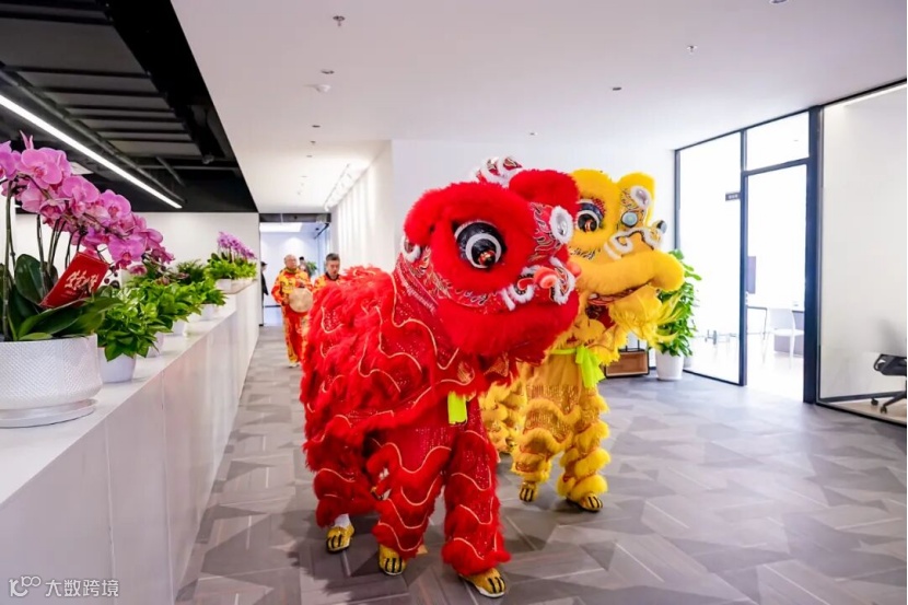点晴完毕,两头生龙活虎的金狮伴随着激昂的锣鼓声,引领来宾巡游新址,将福气与活力遍布每个角落,寓意着泓浒未来在新家园中生机勃勃,火力全开。