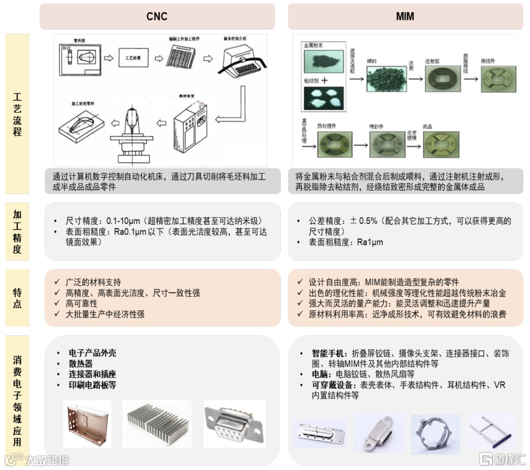 目前消费电子产品的钛合金材料主要加工方式包括CNC加工、MIM(金属注射成型)、3D打印。