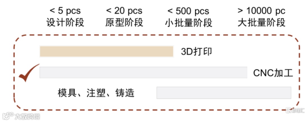 3D打印能够有效避免钛合金在切削过程中加工难度大、刀具磨损严重、良率较低等问题,同时降低原材料的浪费。然而3D打印发展起步较晚,技术成熟度仍与CNC、MIM存在一定差距。同时在批量生产中规模效应尚不明显,需考虑后续降本路径。此外,下游客户在考虑是否运用3D打印技术时,通常会重点考虑设备稳定性、打印效率及批量化的工程应用经验和经济性。因此,存在品牌效应。