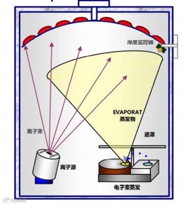 目前半导体精密涂层主要使用电子束蒸发的技术路线。在加工过程中,电子枪产生高速电子束,对电子束进行加速和聚焦后,使其获得足够的能量,然后让电子束轰击靶材,使靶材分子蒸发溅射出来,在基片上沉积,形成涂层。