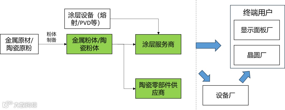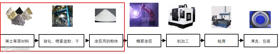 精密涂层服务商的上游:对于未掌握粉体制备能力的公司,其上游主要为陶瓷粉体/金属粉体;对于掌握粉体制备能力的公司,他们的上游原材料主要为陶瓷原粉(包括陶瓷坯料、原材、粉末等)。