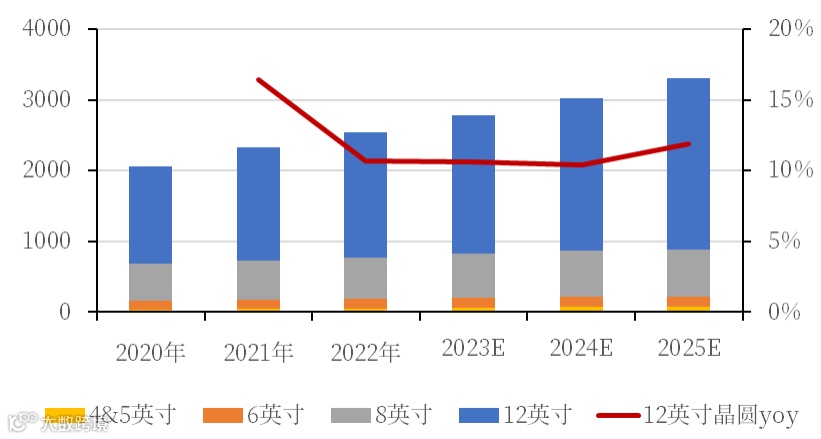 图11 分尺寸晶圆产能趋势(等效8英寸)