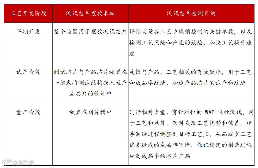 由于WAT是晶圆厂判断工艺良率的测试步骤,所以WAT贯穿了晶圆加工工艺的研发、试产和量产阶段。