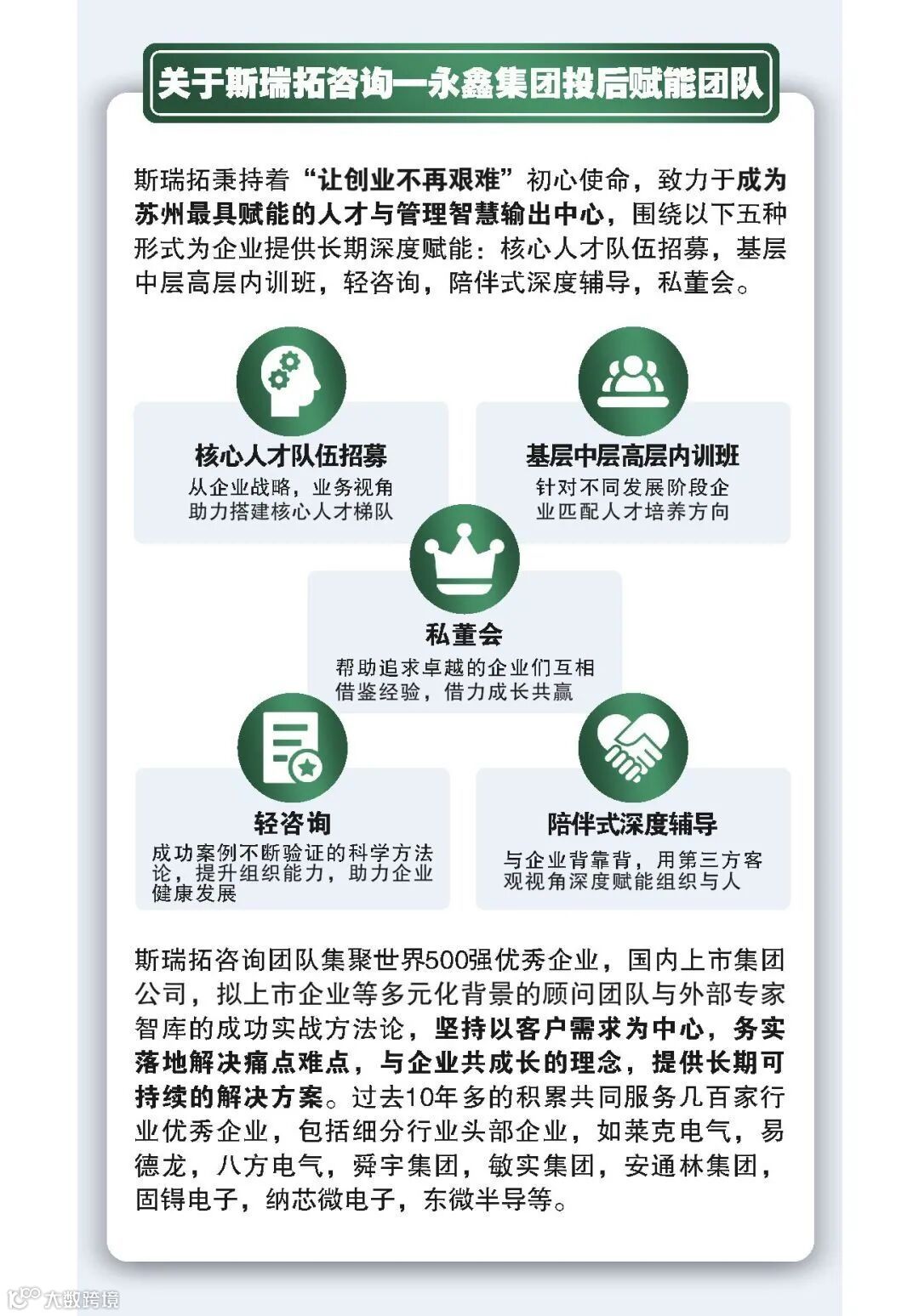 2022年是斯瑞拓具有里程碑意义的一年,创立的初心是“立足创新,激活并赋能中国企业人才&组织发展,用敏捷、专业,务实的服务为企业提供‘选、用、育、留、汰’闭环式全生命周期解决方案,致力于成为苏州最具价值与影响力的赋能机构”。