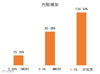 在安全性能方面:添加少量的单壁碳纳米管可以降低电池内阻(DCR)。即使在多个电池充放电循环和电池存储周期之后,仍可在正极材料内保持稳定的单壁碳纳米管网络,从而使高温存储和循环后内阻也保持在较低水平。电池内阻越低,则积聚的温度就越低;最终,电池着火的风险就越小。